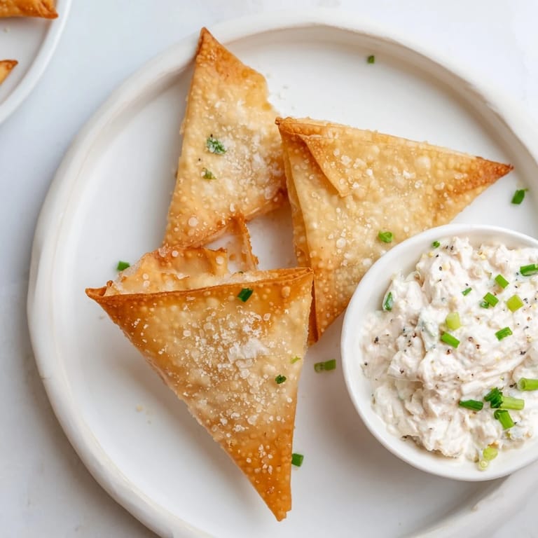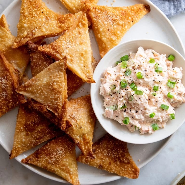 Als ich das erste Mal Freunde damit überrascht habe, dachten alle, ich hätte stundenlang in der Küche gestanden. Niemand ahnte, dass die Chips einfach nur geschnittene Teigblätter waren und der Dip in fünf Minuten zusammengerührt war. Seitdem ist dieses Rezept mein Geheimtipp für Abende, an denen ich entspannt bleiben, aber trotzdem etwas Besonderes servieren möchte. Die Kombi aus knusprig und cremig macht süchtig – ich habe schon erlebt, dass die Schüssel schneller leer war als geplant.