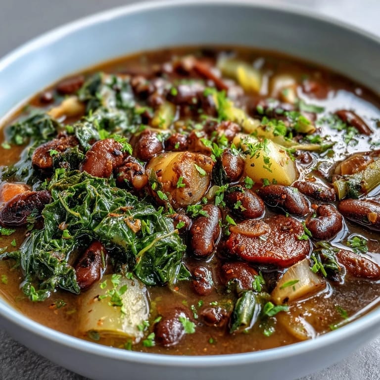Merken My grandmother used to say that a proper stew tells the story of who made it, and this black-eyed pea and collard green creation absolutely carries hers. There was something about the way she'd hum while the pot simmered, how the kitchen would fill with that smoky, earthy aroma that meant comfort was coming. I watched her hands move through the chopping, the sautéing, the patient stirring, and realized this wasn't just a recipe—it was her way of saying I love you without words. When I finally made it myself years later, those same smells transported me straight back to her kitchen, and I understood what she'd been teaching me all along.
