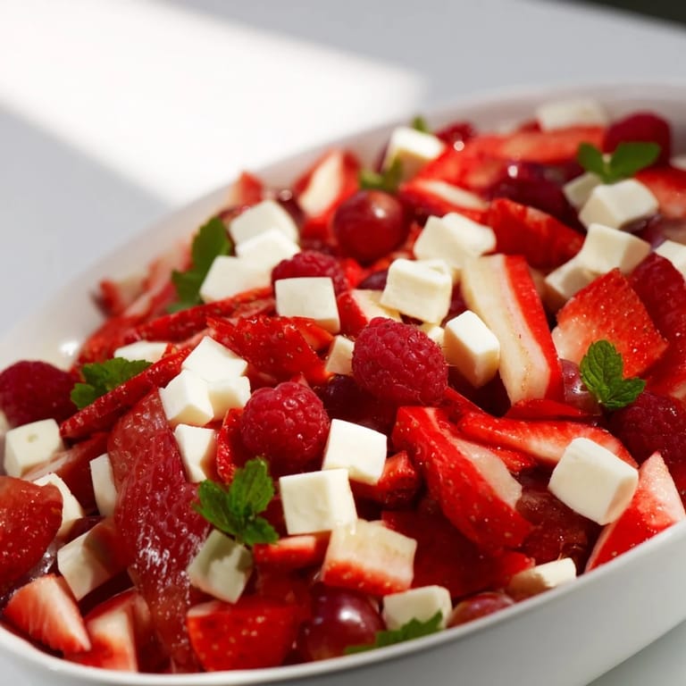 - Frisches Obst: 1 Tasse Erdbeeren, entstielt und geschnitten, 1 Tasse Himbeeren, 1 Tasse kernlose rote Trauben, halbiert