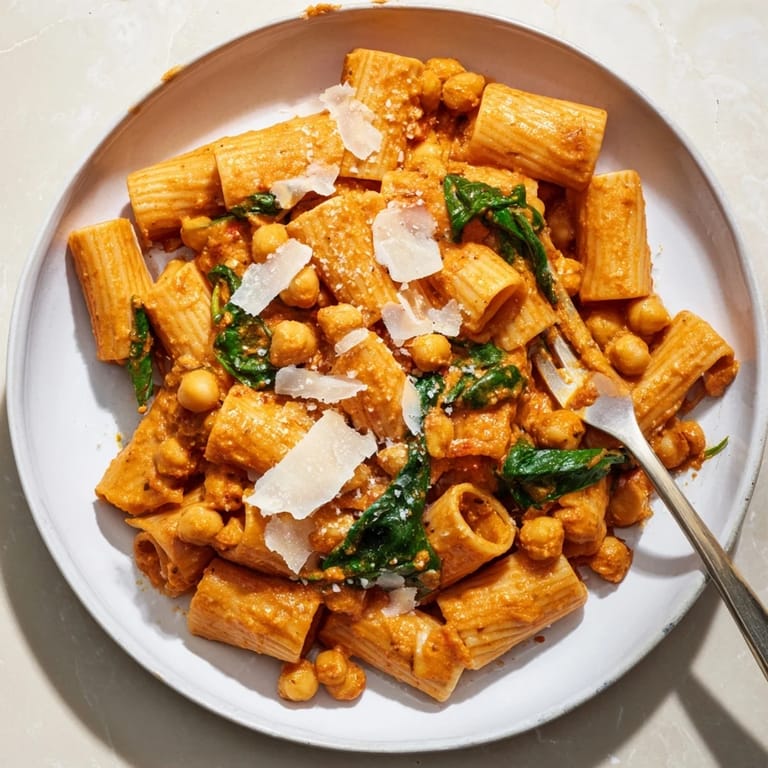 Einmal habe ich dieses Gericht für Freunde gekocht, die behaupteten, Pasta ohne Fleisch könne nie richtig satt machen. Ich hörte ihre Skepsis, während ich den Knoblauch in der Pfanne brutzeln ließ und der Duft sich in der Wohnung ausbreitete. Als ich die Kichererbsen und die Tomaten hinzufügte, wurde es still in der Küche. Beim ersten Bissen nickten sie nur stumm, und einer bat schon um das Rezept, bevor sein Teller leer war. Seitdem nennen sie es das Gericht, das ihre Meinung über vegetarisches Essen verändert hat.