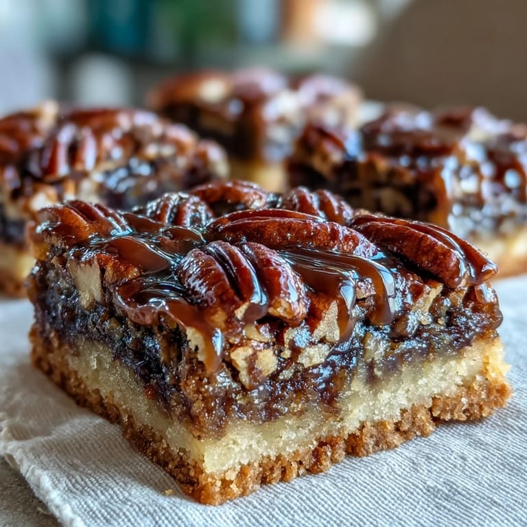 Merken My cousin handed me a bourbon-soaked pecan pie at last year's Derby party, and I watched her devour three pieces while insisting they were "just bars, nothing fancy." The buttery shortbread base melted instantly, the pecans stayed gloriously chewy, and that bourbon glaze dripped down in ribbons that caught the light. I spent the whole drive home thinking about how she'd cracked the code to making pecan pie less fussy but somehow more indulgent. These days, I make them whenever I need to impress without the stress of managing a whole pie.