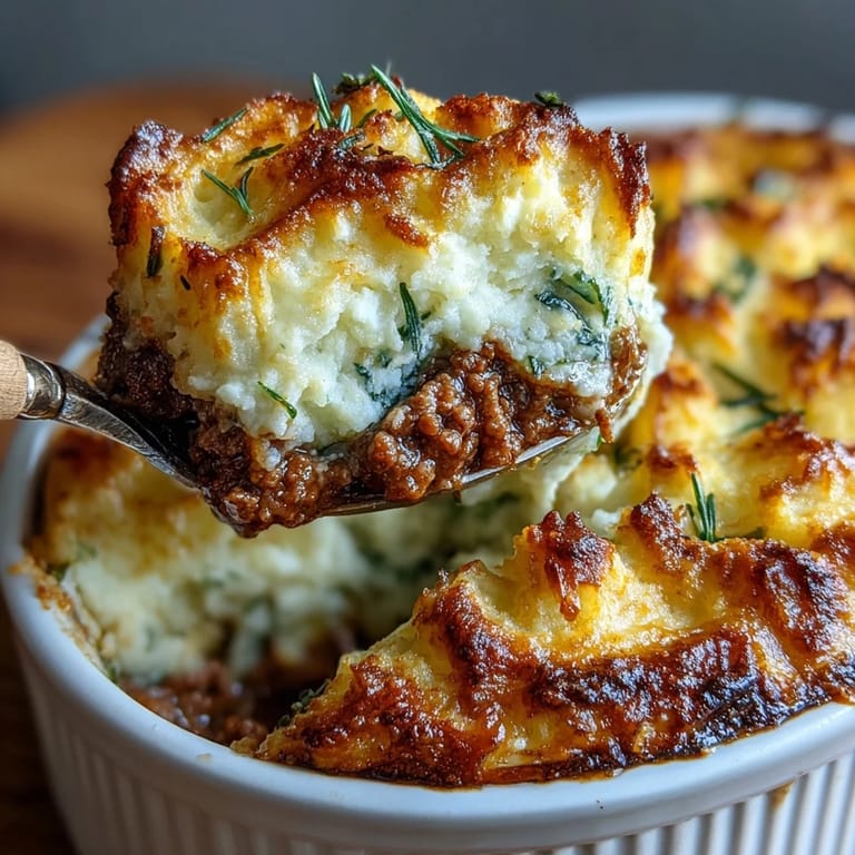 Merken Es war ein kalter Mittwochabend, als meine Nachbarin mir ihre Version von Shepherd's Pie über den Gartenzaun hinweg beschrieb – mit Blumenkohl statt der üblichen Kartoffeln. Ich war skeptisch, bis ich die ersten Gabelstiche probierte und merkte, wie cremig und leicht dieses Gericht sein konnte. Seitdem habe ich die klassische britische Komfortspeise immer wieder neu interpretiert, und jedes Mal überrascht mich, wie die erdige Fleischfüllung und die samtige Blumenkohl-Haube sich zu etwas Besonderem verbinden.