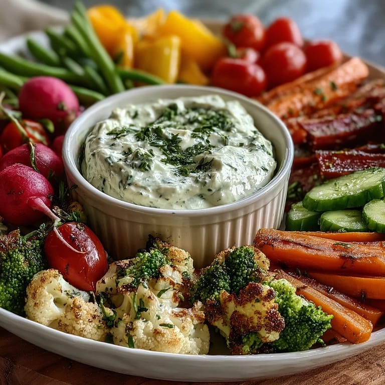 Merken Meine Tochter kam eines Nachmittags nach Hause und fragte, warum Gemüse auf Partys immer langweilig schmeckt. Das war der Moment, als ich beschloss, ein Tablett zu kreieren, das sie wirklich begeistern würde. Mit frischem Gemüse und dieser cremigen, kräuterreichen Green Goddess Dip entstand etwas, das selbst meine skeptischen Kinder tatsächlich essen wollten. Die Schüssel mit Dip verschwindet immer zuerst, noch vor den Chips. Seitdem ist dieses bunte Tablett mein Geheimnis für erfolgreiche Zusammenkünfte.