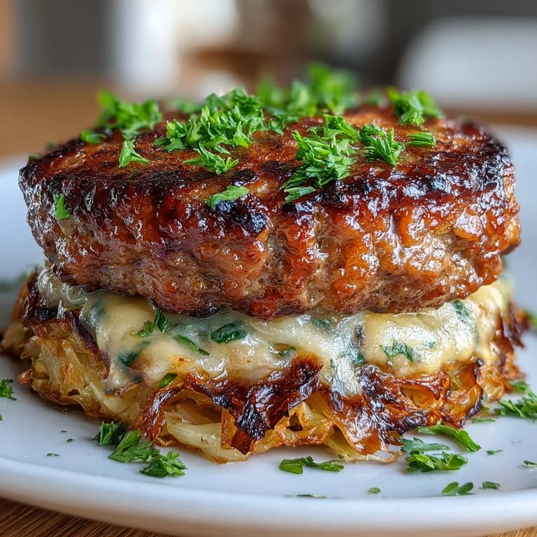 Merken My sister called me mid-afternoon asking if I could pull together dinner in under an hour. She'd gone low-carb and was tired of the usual chicken and broccoli routine. That's when cabbage burgers came to mind—something I'd read about but never actually tried. The moment those thick, caramelized cabbage slices came out of the oven, golden and tender, I realized this wasn't some sad substitute meal. It was genuinely delicious, and honestly, everyone at the table preferred it to the traditional version we usually make.