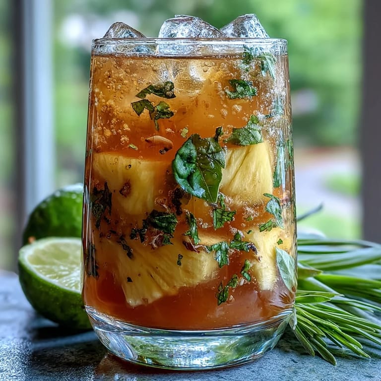 Merken Last summer, my neighbor showed up at my door with an armful of pineapples from her farmer's market haul, insisting I do something interesting with them before they overripened. I grabbed a handful of basil from my porch pot on a whim, and within minutes, we were blending this vibrant drink that tasted like bottled sunshine with a whisper of something floral. That one afternoon turned into an entire season of making this whenever friends dropped by unexpectedly—it became the drink people asked for before they even said hello.