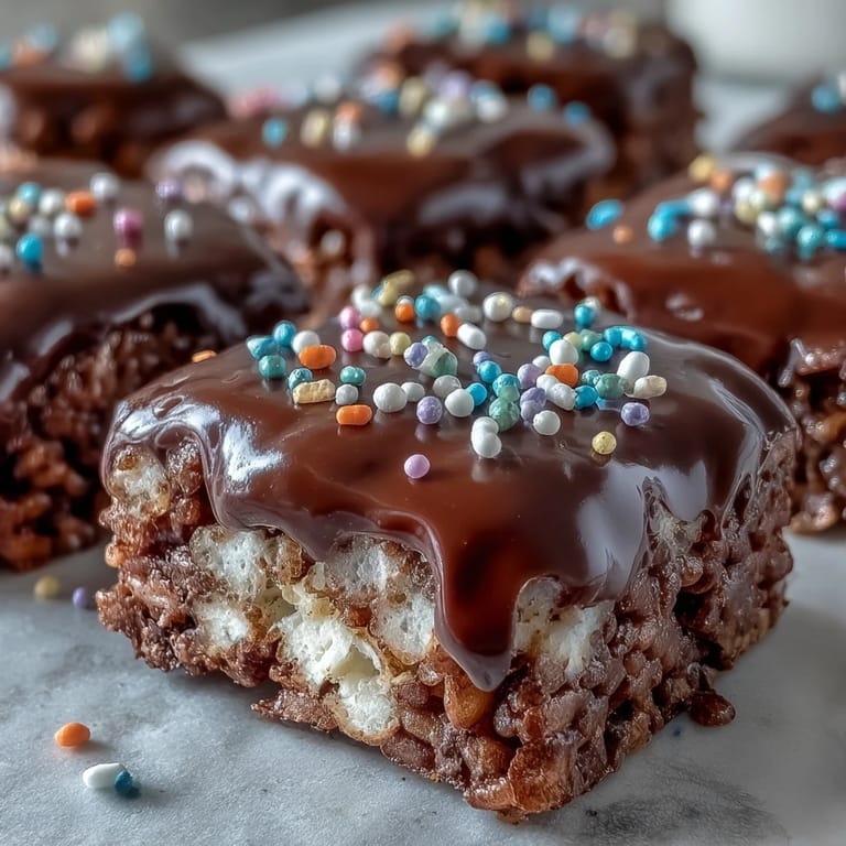Merken Crispy cereal meets gooey marshmallow, then gets drenched in rich, glossy chocolate and finished with colorful sprinkles. Each bite of these Chocolate Covered Rice Krispy Treats is a delightful harmony of crunch and melt—perfect for parties or sharing at any gathering.