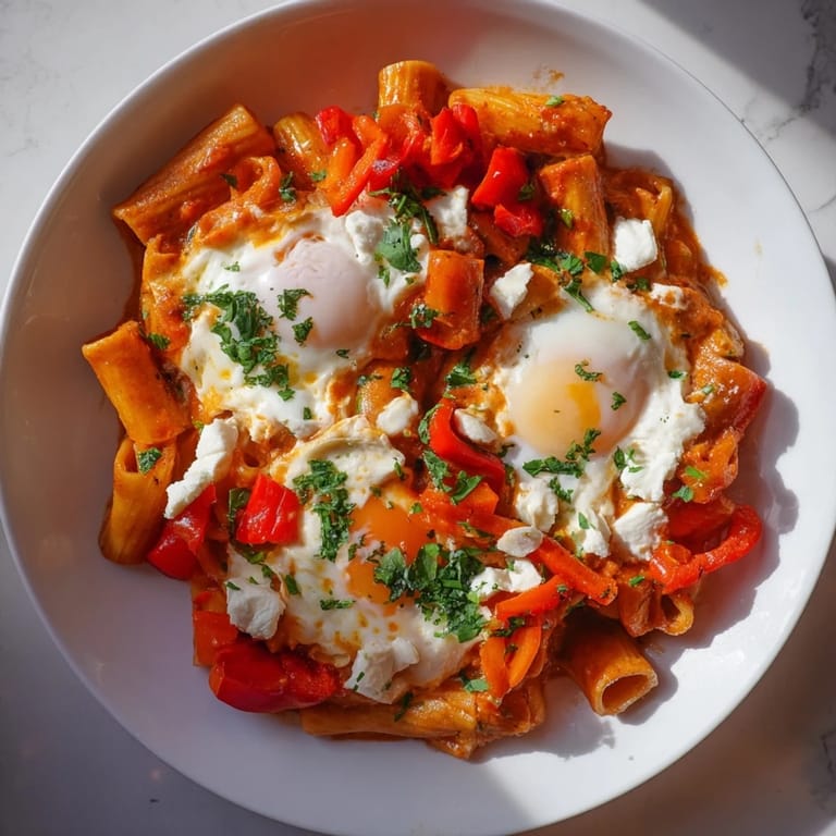 Merken Die erste Begegnung mit dieser Shakshuka-Pasta war eigentlich ein glücklicher Zufall an einem regnerischen Mittwochabend. Ich hatte eine Dose Tomaten und etwas Pasta im Schrank, wollte aber etwas Wärmeres als die übliche Beilage. Irgendwie vermischte sich mein Hunger nach orientalischen Gewürzen mit der italienischen Pasta in meinem Kopf, und heraus kam dieses wunderbare Chaos aus würziger Tomatensauce, Pasta und goldenen, runzligen Eigelben. Seitdem ist es eines jener Gerichte, das immer funktioniert, wenn die Zeit knapp ist und der Bauch knurrt.