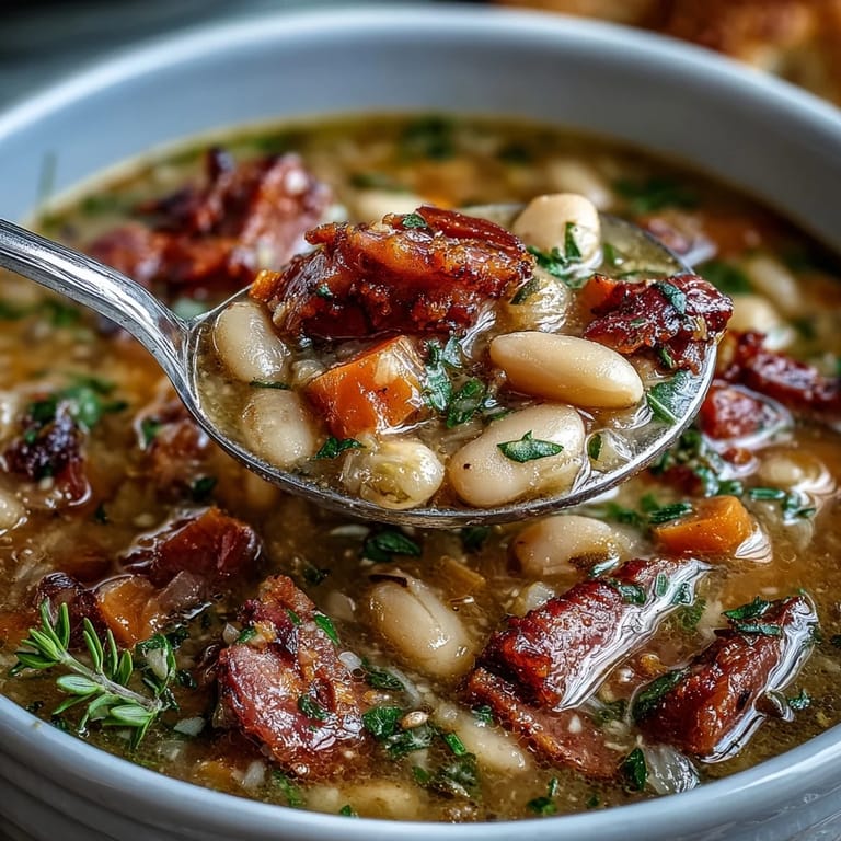 Diese Suppe ist vielseitig, ohne ihre Seele zu verlieren. Wenn du es dichter magst, kannst du einige Bohnen zerdrücken oder sogar ein paar Kartoffeln in Würfel schneiden und am Anfang hinzufügen. Wenn du Grüns magst, gib gehackten Spinat oder Grünkohl in den letzten 30 Minuten hinzu – sie werden weich und verlieren ihre Bitterkeit in der warmen Brühe. Der Schinkelgeist ist hier nicht verhandelbar, aber alles andere kann an dein Zuhause und deine Vorlieben angepasst werden.